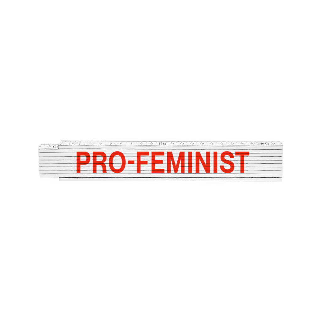 Viele Zollstöcke, die man im Baumarkt erwerben kann, sind heutzutage immer noch mit sexistischen Sprüchen bedruckt – etwa „Vorsicht Frau“, „Tussi@work“ oder „Meiner ist zwei Meter“. Solche Aussagen sind oft subtil oder offen sexistisch und reproduzieren reaktionäre Geschlechtervorstellungen. Der Zollstock mit dem Aufdruck „Profeminist“ wird zu einem symbolischen Werkzeug, das nicht nur eine Haltung ausdrückt, sondern auch eine Aufforderung zur Veränderung.